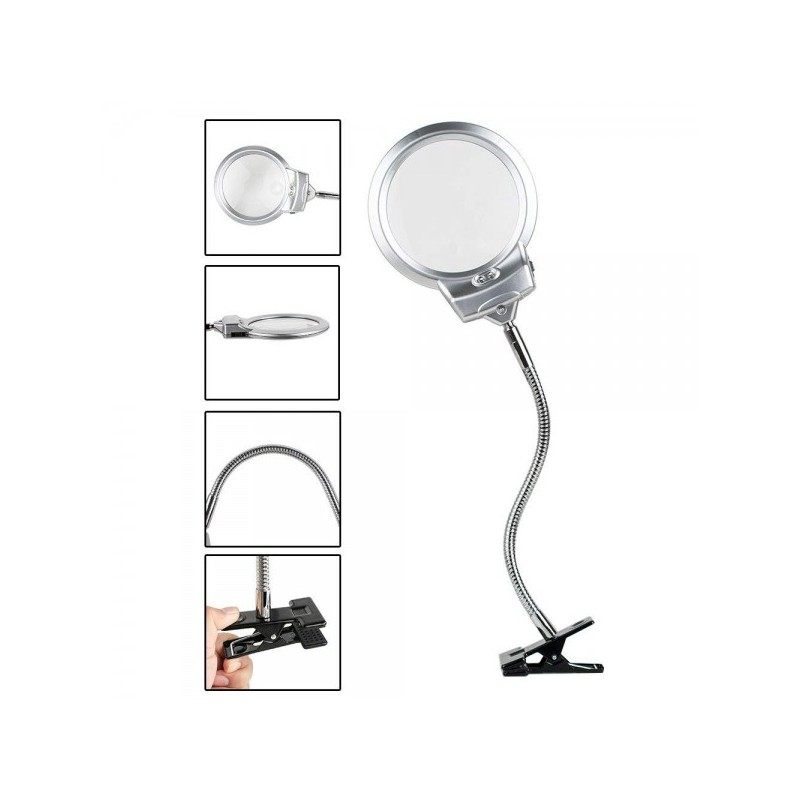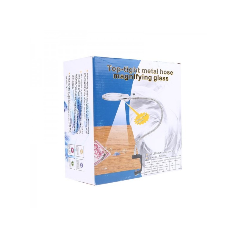 Nikula-2.5X130 MM 5X24 MM LED Aydınlatmalı Büyüteç,Masa üstü Metal Hortum Mandallı-MG15124-C