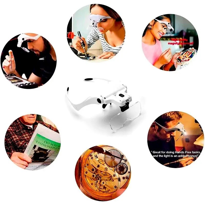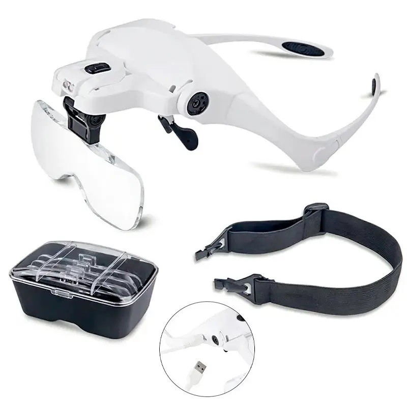 ŞARJ EDİLEBİLİR 5 LENSLİ GÖZLÜK BÜYÜTEÇ Ürün Özellikleri: Ürün diğer benzeri gibi değildir şarjlı olması en önemli avantajıdır. 1x, 1. 5x, 2x, 2. 5x, 3. 5x Lens mercekli ( 5adet ) 2 Led ışıklı Kafaya takmak için lastikli kafa bantı Genel Cerrahi , Elektrik , Elektronik Tamircileri , Kuyumcular vb meslek gurupları için uygun üstün kalite gözlüklü Büyüteç Kullanım alanları: T ıbbi konular, Elektronik, Metalurji, Mekanik , Biyoloji, Sağlık ve Güzellik, Arı yetiştiriciliği, ziraat mühendisliği ve Büyütülmesi gereken tüm görsel konularda işinizi çok kolaylaştıracak ışıklı Büyüteç